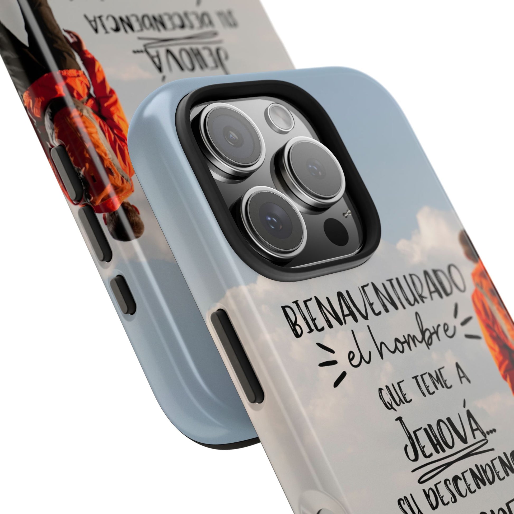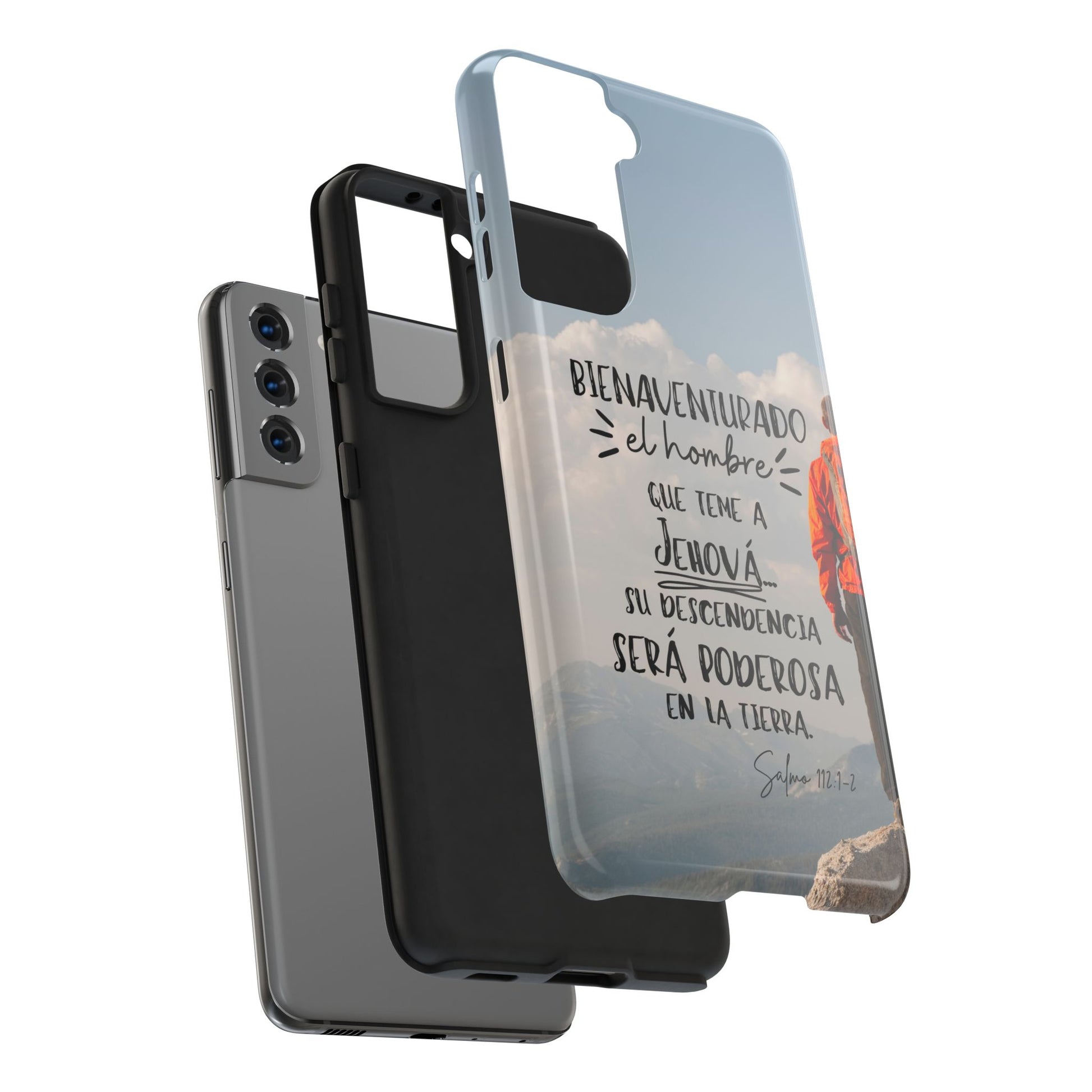 This tough phone case marries rugged protection with a quiet, faith-steeled message. The artwork shows a lone figure on a mountaintop beneath the words of Salmo 112:1–2, inviting a steady, legacy-minded rhythm to daily life. It feels like a small altar you carry: a reminder of reverence, responsibility, and the way one life can shape future generations. For dads, pastors, mentors, and men building something that lasts, the case survives drops and scuffs while keeping your conviction front and center. It catches light with a glossy, vibrant finish and resists UV fade so the sentiment endures through seasons and commute routes. Practical details — a shock-absorbing liner, lay-flat bezel, and wireless charging support — mean it stands up to real use without getting in the way of the life you’re leading.