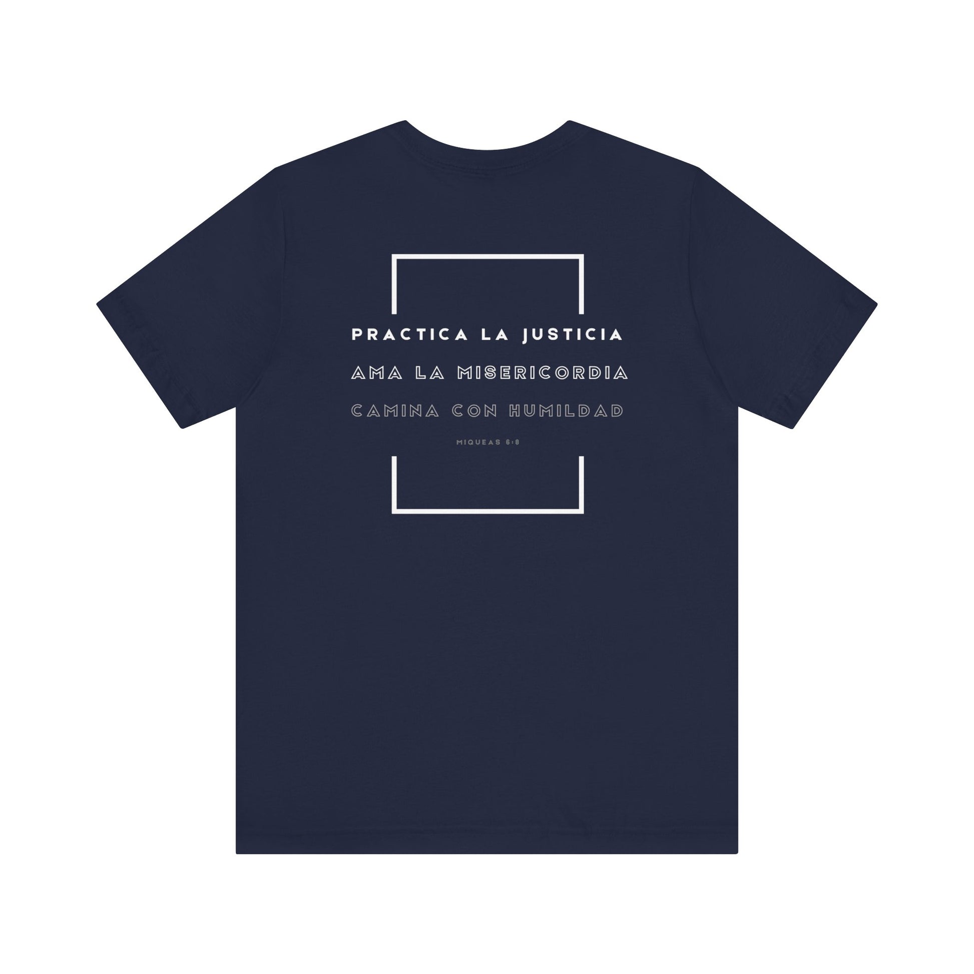 Carry a quiet call to justice, mercy, and humility with this lightweight Christian tee. A simple dove rests on the chest like a daily reminder of the Spirit; Micah 6:8 flows across the back in Spanish, inviting reflection in every movement. The breathable Airlume cotton and retail fit sit comfortably under a jacket or stand alone at a youth group, ministry event, or neighborhood meet-up. Ethically made and softly finished with a tear-away label, this shirt slips into the rhythms of active, faith-led lives—wear it to lead, to serve, or to worship with intention.