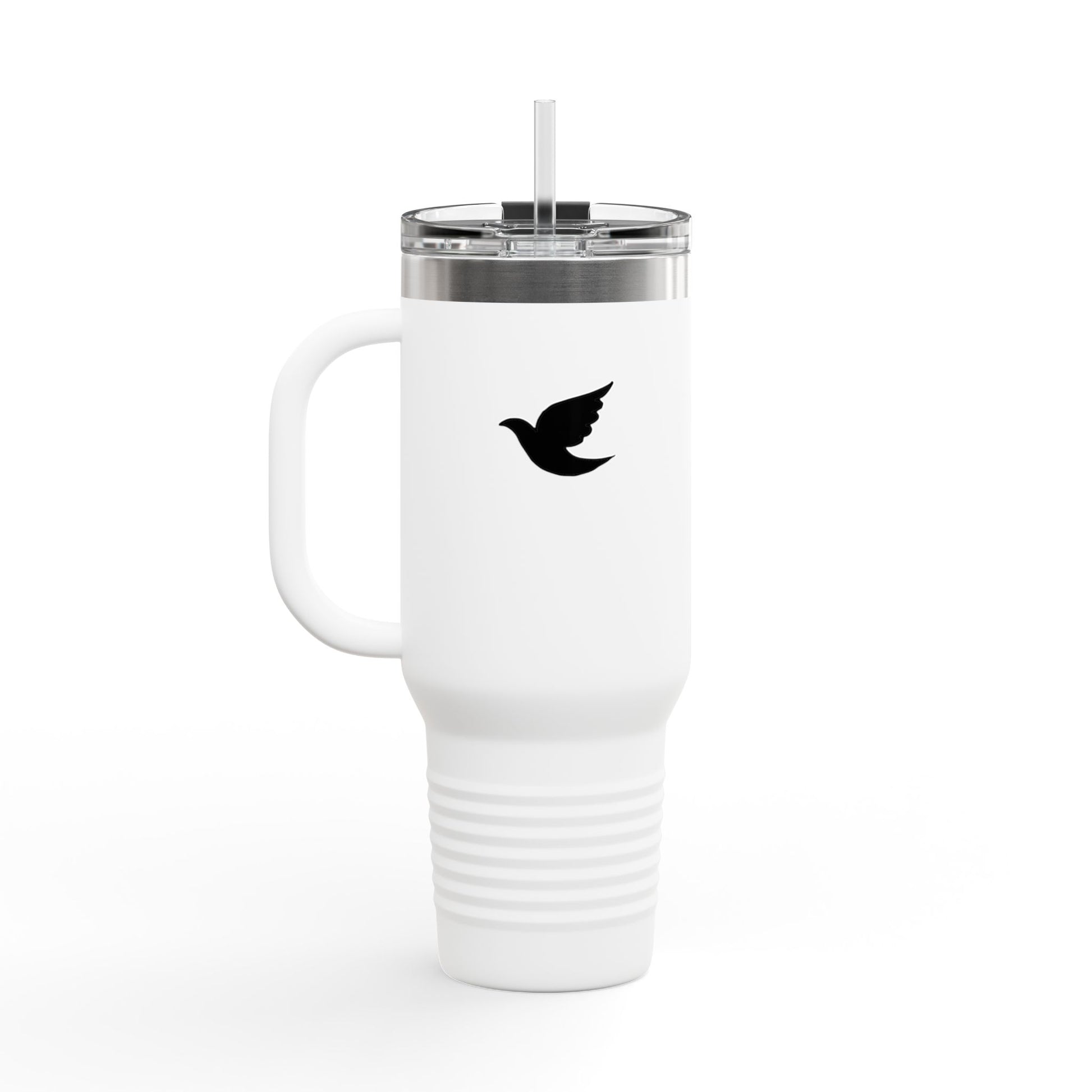 Carry your faith with you through long days and long drives. This 40oz insulated travel mug features the Spanish verse Mateo 6:10 — “Venga tu Reino y hágase tu voluntad” — printed in rich UV-DTF color on a durable powder-coated surface. Double-wall stainless steel keeps coffee steaming or agua fría chilled for hours. A secure, leak-resistant lid and reusable BPA-free straw move with you from church meetings to road trips, while the ergonomic handle makes it comfortable to grip on the go. Available in eight modern colors, it’s designed for Hispanic Christians who want a tangible, everyday reminder of Kingdom living — to sip quietly, pray boldly, and carry the Word into every routine.